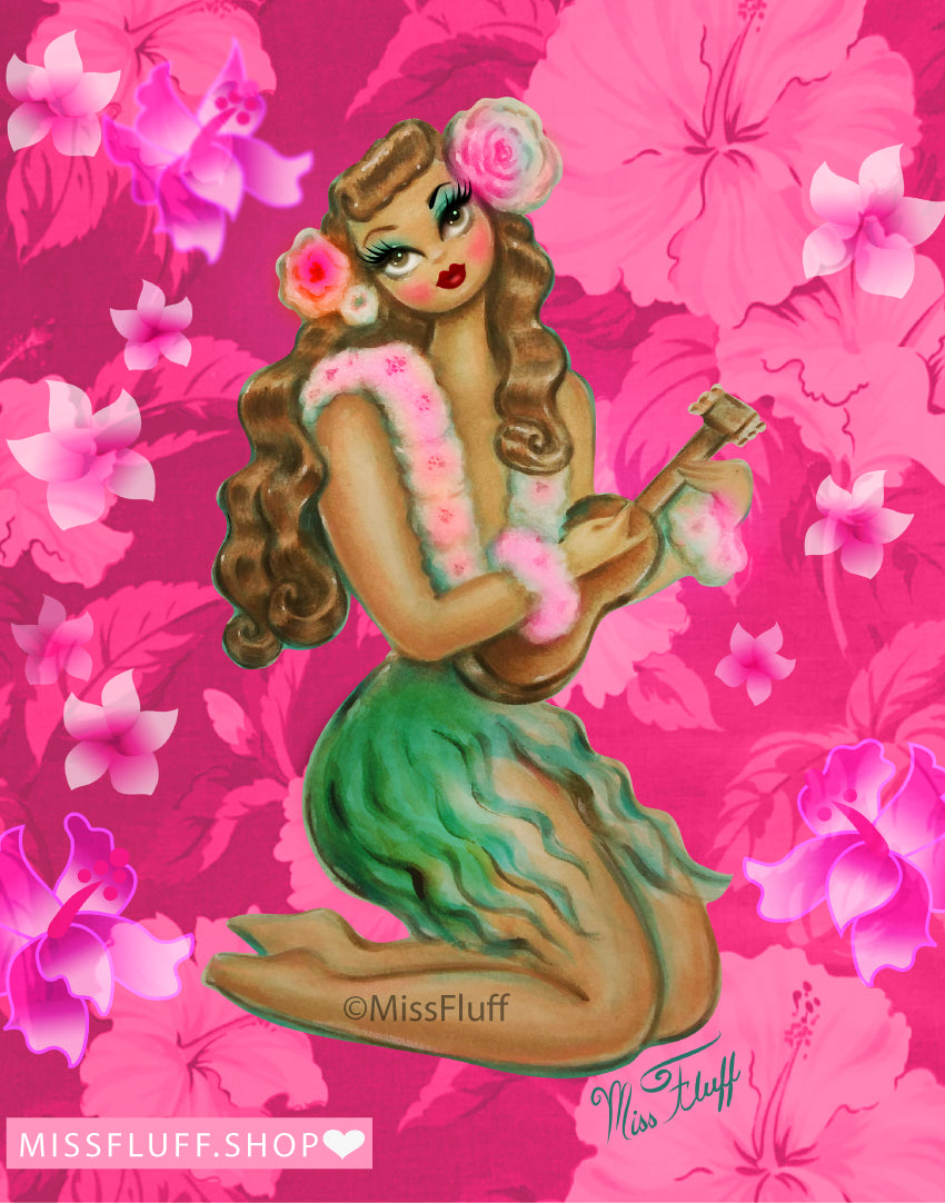 Pink Aloha Hula Girl • Art Print